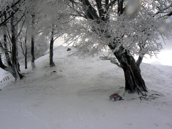 El hielo Guardo esta foto para el final , pues es una de las que quedan en el recuerdo, están estos árboles muy cercanos al cordal de Bianditz ,subiendo desde el refugio de Aritxulegui . Estuve un rato ahí debajo, como buscando un calor o una protección que solo parecia existir cerca de sus raices. ,
