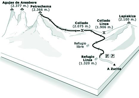 Salgo a las 5 y media de esta mañana de domingo para llegar al refugio de Linza hacia las 8. Poquismo trafico a esas horas . El refugio esta a tope y el parking ve prepararse ya a los montañeros y descubre a algun visitante inquieto comprobando la cobertura del movil . Por fin desde hace muchos fines de semana el cielo esta azul , totalmente despejado y mas increible aun, con prevision de buen tiempo .Incluso en primavera a esta hora de la mañana la temperatura en el area del refugio no debe estar muy por encima de los tres o cuatro grados , hay restos de hielo muy cerca . Repaso y compruebo los packs de baterias, emisora, carga de recepetor , recambios, calzo las botas, guantes, ropa de abrigo mochila y en marcha . Se me olvida la bolsa de vicios comestibles y mas tarde la echaria en falta.