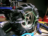 Arriba, rotura de tirante del buje trasero izquierdo en Canal Roya . Hizo el regreso arrastrando la rueda trasera en esta posición pero con tracción.