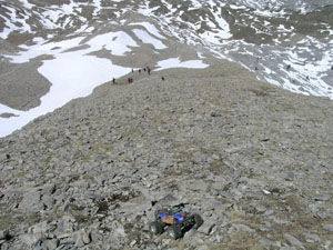 En dos rutas se agotaron o fallaron las baterías y tuve que acarrearlo: Desde la Cola de Caballo de Ordesa hasta la Pradera, desde collado de Linza al refugio. Mojado y guarro como suele bajar pesa 6 Kilos, no cabe en la mochila y es de muy mal llevar.