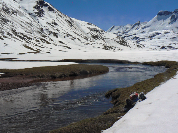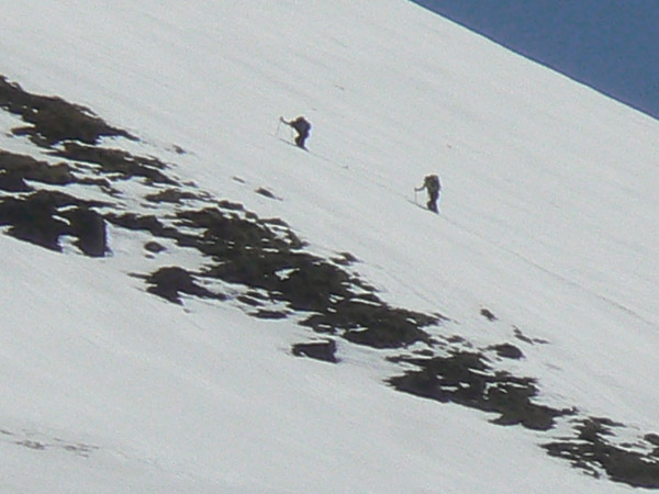 De todas formas, a horas tempranas (8-9 de la mañana) la nieve suele estar mas compacta y a menudo ha helado durante la noche, lo que nos da un margen de manibora, al menos duraynte la subida. Al regresar... ya veremos, prefiero no pensarlo.