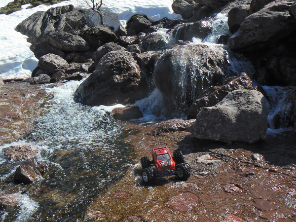 Bajando todo ayuda, en especial un par de motores electricos de 11,4 V acelerando a tope, lo que no puede empujar lo salta, y la nieve que se resiste la rompe.