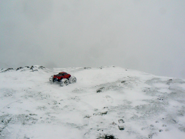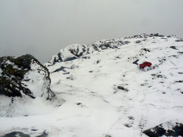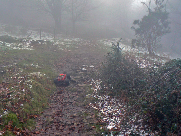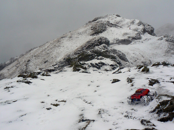 Subo con el coche de radiocontrol en busca de la esperada nieve , por primera vez en este invierno a cotas relativamente bajas.