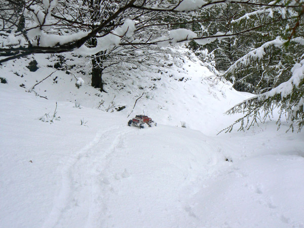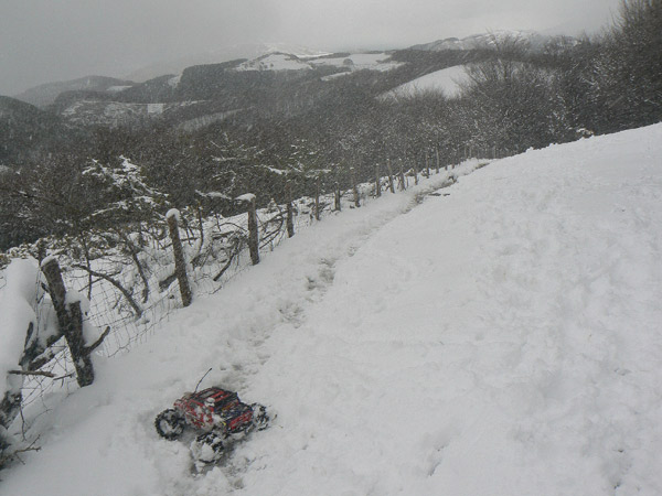 No es la nieve preferida para andar con un Emaxx , seguro, ya me he