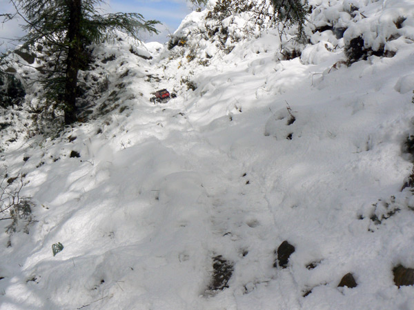 la pisadas de otros excursionistas y alguna huella de esquí o
