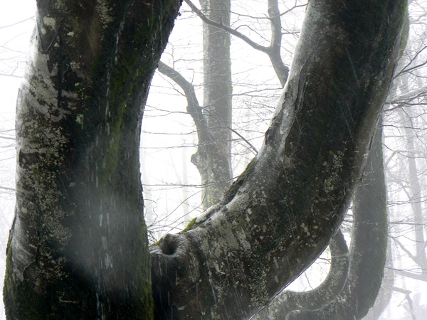 la nieve que funde y la que me ha caído encima desde los árboles,