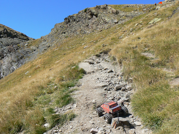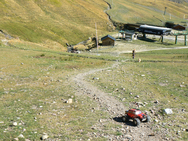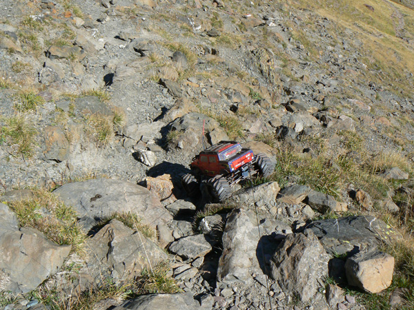 Interferencias , y van 4. Otra caida Cuarta ruta jugándome el coche por culpa de unas interferencias que se producen al acercar mucho la emisora o en cuanto baja un poco la tensión del Receiver. Tengo pedido ya el recambio original y un conjunto de cristales pero decidí arriesgarme de nuevo en esta excursión. No me pareció un itinerario expuesto a caídas y la previsión meteorológica de Soles por todo el Pirineo para este fin de semana fue poco habitual. No se podía desaprovechar . Por una única vez ,tres servicios metereológicos que acostumbro a consultar: Meteo France, Euskalmet y Barrabés, estaban de acuerdo. Este tramo que parece en la foto me hizo acordarme varias veces del receptor Chino de 20 euros que compre para salir del paso .En esta zona no podía llevar al coche muy lejos de mis manos , a lo sumo cuatro o cinco metros y requiere mucha atención, en cuanto me acercaba un poco más se volvía loco ; primero se paraba unos segundos y luego aceleraba a tope , trabajo tenía con desconectar inmediatamente la emisora y parar el coche que ya estaba haciendo un back flip valle abajo. Poco antes de este lugar el coche se despeñó en un paso ascendente con inclinación lateral, que aunque ligera era de levantamiento brusco. No sólo se salió el coche del camino durante la subida sino que al regreso lo hizo exactamente en la misma piedra, aunque ya asegurado, Nos llevo 15 minutos a mi mujer al chaval y a mi encontrar las baterías que se desprendieron durante la caída, de unos 15 metros de desnivel y unos cincuenta de recorrido. Si os ocurre alguna vez esto debéis dejar una marca en el punto donde inicia la caída, por ejemplo la mochila y bajar por el mismo sitio donde ha trazado el coche. No mover el coche de sitio hasta comprobar que esta todo, así si falta algo tenéis dos puntos de referencia origen y fin de la caída y es más fácil encontrar algo. |