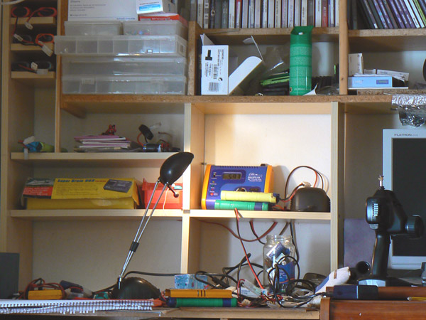 Caminar con 14 Kg. a la mochila , llevando un Emaxx por delante, el mando en una mano y un hueso roto en la pata no es nada divertido. A pesar de la imprudencia de seguir andando por terreno pendiente con un hueso roto y con peso a la espalda tuve la suerte de que el hueso no se desplazo y quedaron casi alineados. En el centro medico de la estación de Grau Roig me diagnosticaron la fractura tras ver dos radiografías. No van a leer estas paginas pero deseo ezpresar mi agradecimiento a a los dos taxistas de Seo de Urgell, Joan y Gil que aparte de hacer su trabajo mejor que muchos supieron y quisieron ayudarme y animarme en todo lo que necesité. En esta imagen el "Txoko" del Emaxx - y recientemente de un Rising Storm para mi hijo. Ya veis, cargando baterías nuevamente, las de arriba a la izquierda ya están a tope. Y con ganas, muchas ganas de probarlas nuevamente.