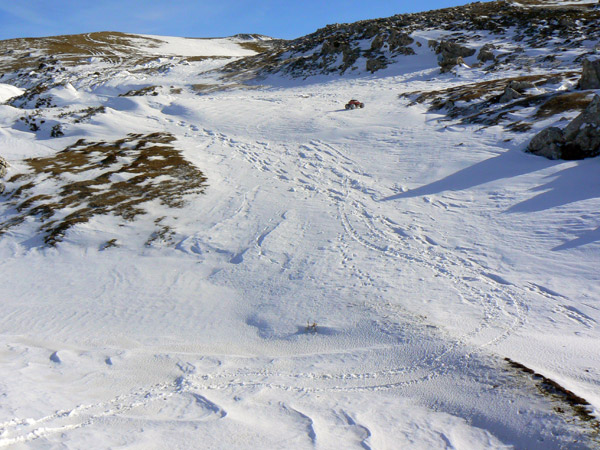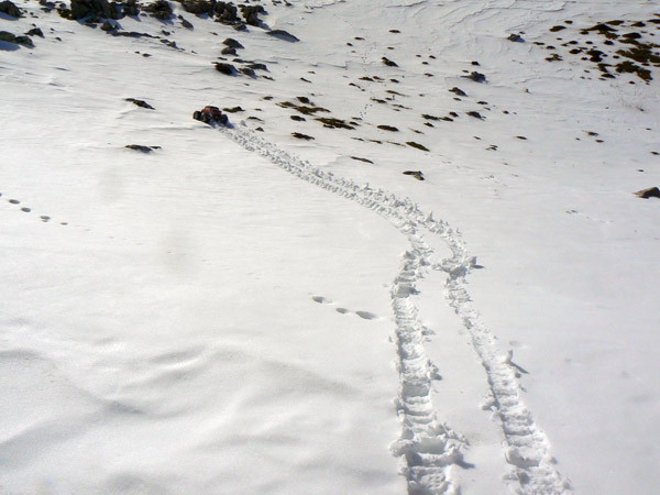Aqui ya no hay tanta pisada como en el tramo anterior, si que han pasado botas pero mas parece que hayan corrido esquis de fondo.