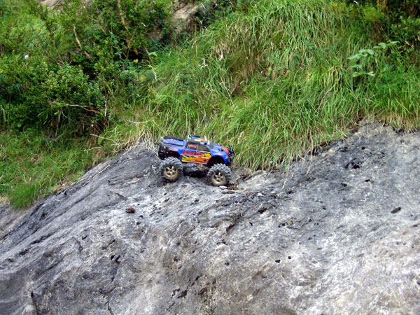 Estamos a una media hora desde que iniciamos el recorrido. Seguimos por la pista, ahora algo mas altos que el río pero con muchas ganas de camino trialero. El Emaxx esta que se sube por las paredes y yo casi, no es mi terreno ni el de un monster truck con relación 12/72 |