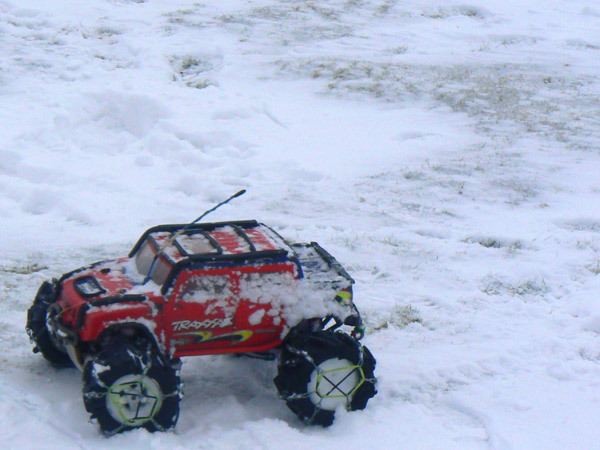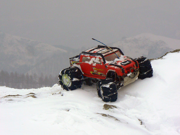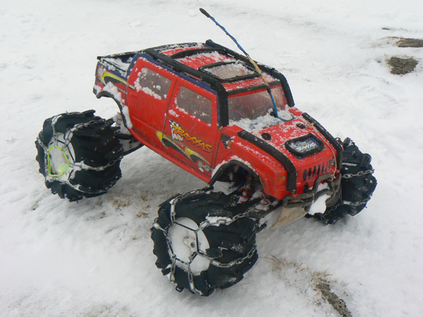 Cuando hace tanto frío como para que la nieve y el hielo se queden pegados a la carrocería de lexan y la nieve de los guantes no se funda hay que empezar a vigilar que no se haga hielo la nieve que puede juntarse en los tirantes de dirección o en el brazo del servo. Que se forme en los palieres o amortiguadores es muy difícil porque están en constante movimiento y arrasan con todo pero en los links de dirección o en el servo ya es otro caso. Solo me ha ocurrido una vez que el hielo en el servo se haya cargado los engranajes metálicos de su interior pero hay que estar al tanto si se empiezan a formar carámbanos o gotas heladas. Poco hay que podamos hacer si eso ocurre, excepto soplar para calentar un poco las articulaciones del servo y rascar con un destornillador fino. |