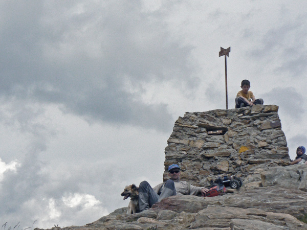 La cima al fondo, en lo alto. Donde debe estar. Es difícil imaginar como un niño de casi 11 años puede negarse a llegar a la cima teniéndola a la vista como en este punto. Estaba el pobre ya un poco desesperado, elevación tras elevación siempre aparecía otra detrás que parecía dejar la cima como algo inalcanzable y alejarla en cada paso . Cuando llegó aquí mi hijo quizás la dio ya por conseguida, a tiro de piedra . La verdad es que se porto de maravilla hasta este punto pero no es menos cierto que nos costo mucho convencerle y fueron necesarias unas cuantas negociaciones acerca del premio por conseguir que subiera hasta la cima y tener el record andando de su clase en la escuela. Estamos a 2650 m más o menos, me cuesta seguir el ritmo del Emaxx y paro cada cien metros de subida a tomar aliento con la excusa de encontrar el mejor trazado, muchos años fumando se pagan , incluso casi dos años despues de haberlo dejado. No es un tramo difícil después de lo que hemos subido. Solo es duro y largo. Hace más de año y medio que dejé de fumar, coincidiendo con la famosa ley que prohibió hacerlo en los lugares de trabajo , y a pesar de que subir aquí tres años atrás habría sido para mi casi imposible siento que de no haber fumado durante tantos años tendría más resistencia y aire suficiente para subir sin pausas.