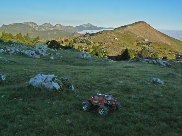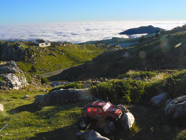 Intento nosecuantos al pico de Anie con coche. Ruta numero 102 . Radiocontrol en los pirineos con un coche electrico 4x4. Anie. No hay nada como no conseguir un objetivo que me anime más a intentarlo de nuevo. Regreso al Anie con el coche, quizás por cuarta vez. Da igual, me paseo por el Karst de Larra y el del Anie . Si puedo bien, y si no a la próxima. Toca madrugar un poco, el domingo a las 4 salgo de San Sebastian para llegar poco después del amanecer. En el collado de la Piedra de San Martín descanso un poco y preparo los trastos. ! 6 kios de baterias , estan locos estos romanos. , Emisora y servos probados. Empieza a dar el sol luz al aparcamiento y toda Francia parece cubierta de niebla como he visto ya en varias ocasiones por esta divisoria en las subidas a los Arlas, Lakora, Cortaplana, o Kartxela.