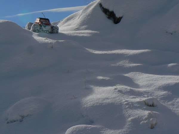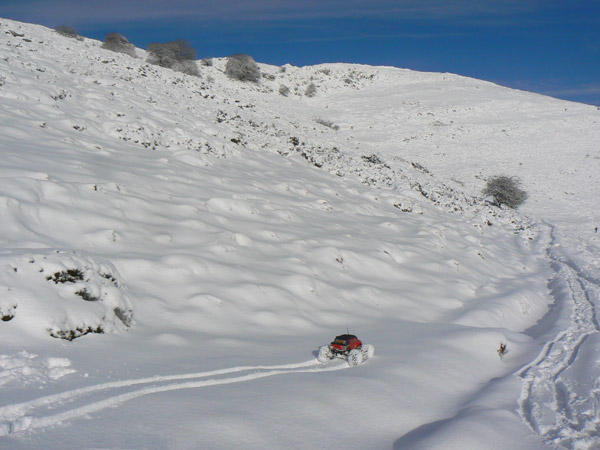 A veces parece imposible que la nieve aguante el peso del emaxx , y sin embargo al dejarlo encima no llega a tocar los protectores de bajos. Es ahí cuando podemos avanzar mejor.