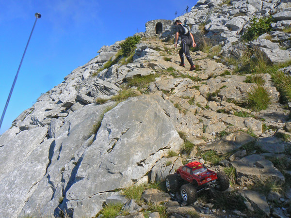 Subir al Ernio con coche 4x4 de radio control electrico es algo sencillo, solo un par de pasos antes de la caseta refugio pueden necesitar un poco de ayuda, el ultimo tramo , contra lo que puede parecer al que lo conocen, no es el mas dificil, y ademas tiene alternativa antes de llegar a la cima para rodearla y acceder facilmente.