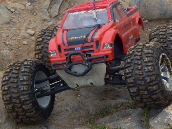 Ficha técnica. Emaxx Setup. Gasto de baterías: 4 Doble pack de duratrax 4200Mah / 4100 mas , 1 Lifepo 4500 mah Muelles de espiral roja Integy Tmaxx duros, dos anillos de precarga en los amortiguadores. Diferenciales bloqueados + 4 MIP Cvd en un lado - RPM brazos - Robinson Racing piñones. Neumáticos originales Traxxas preparados. Cajas diferencial aluminio Megatech. Aceite 30/40 en amortiguadores Bigbore con un agujero en pistón. Posición amortiguadores 1B. Servo Hitec 645MG. 2 Rx packs Nimh 6V * 1400 mah independientes para servo y ventilador. Tx pack 8 * 2500 Sanyo nuevas Nimh. Brazos de dirección RPM con rodamientos más grandes y sellados. Bieletas dirección aluminio. 2 MIP CVD delante. Robinson Racing diferencial... Bajos tapados con placa de Pvc 3 mm, incluidos brazos de suspensión y frontal mucho más ancho que el estándar. Disipadores de calor en aluminio para los dos motores Integy 45T en paralelo a maximo de 12V , ventilador adicional para aletas motor y variador electrónico. .