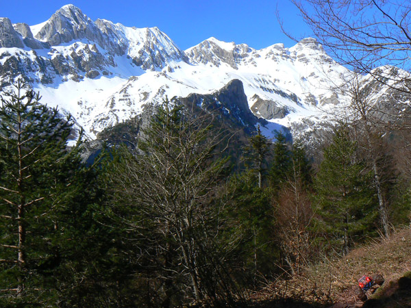 Regrese hasta el refugio de Selva de OZa , y dejando el coche aqui me decidí a probar por una parte el barranco de Estriviella, camino del Pêñaforca y de otra el acceso al Catillo de Acher. Ya sabia que no iba a pasar de los 1700 m debido a la nieve, pero por probar...