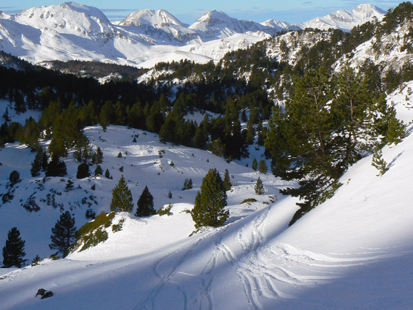 La idea es tirar hasta el collado de Pescamou evitando la ladera del Arlas ( voy sin crampones), seguir hasta el colaldo de Baticoche y llegar hasta donde pueda hacia el Anie. eso ya va a depender del gasto de baterias, pues necesito reservar una y media o dos para el regreso.