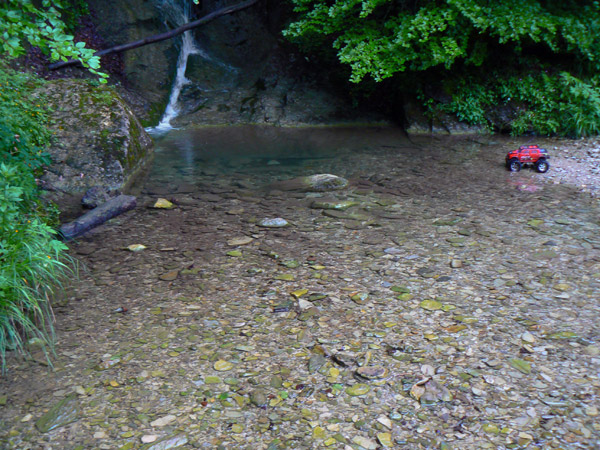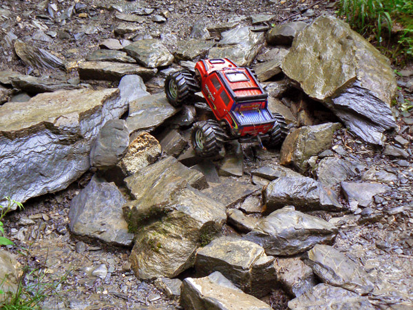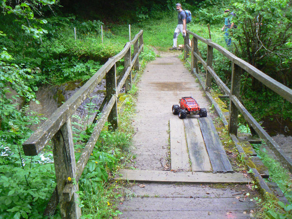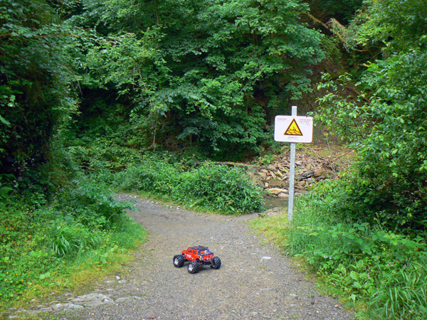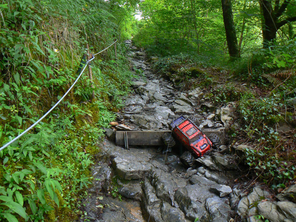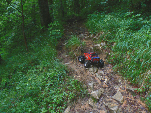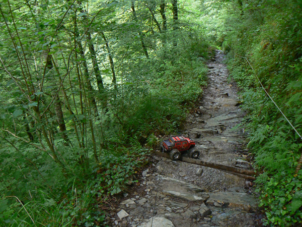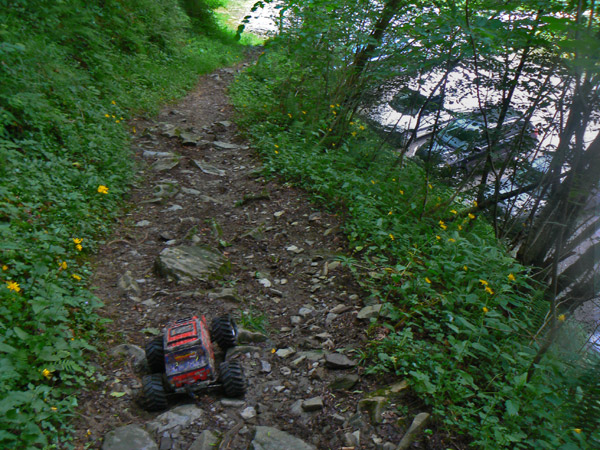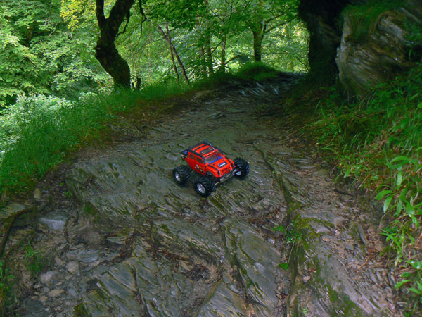 ancho ligeramente superior al neumático del Emaxx y hay que pasarlo lo mas recto posible,
