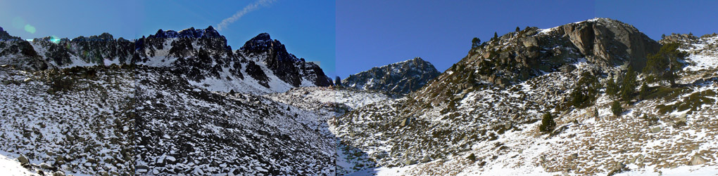 La mayoría de rutas con el coche se han hecho en los Pirineos. En la panorámica , camino del circo de Pessons. Andorra