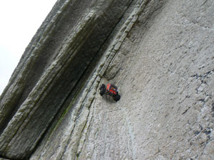 Ruta Picos Europa . El cable hacia pared de Peña Olvidada.