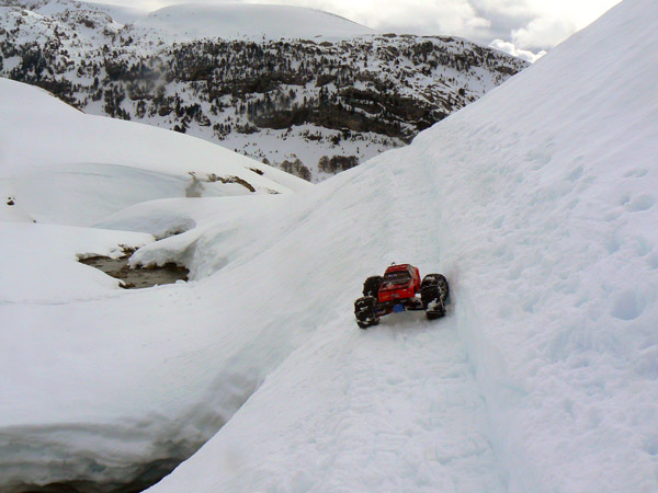 Ficha técnica. Emaxx Setup. Gasto de baterías: 4 Doble pack de duratrax 4200Mah / 4100 mas , 1 Lifepo 4500 mah Muelles de espiral roja Integy Tmaxx duros, dos anillos de precarga en los amortiguadores. Diferenciales bloqueados + 4 MIP Cvd en un lado - RPM brazos - Robinson Racing piñones. Neumáticos originales Traxxas preparados. Cajas diferencial aluminio Megatech. Aceite 30/40 en amortiguadores Bigbore con un agujero en pistón. Posición amortiguadores 1B. Servo Hitec 645MG. 2 Rx packs Nimh 6V * 1400 mah independientes para servo y ventilador. Tx pack 8 * 2500 Sanyo nuevas Nimh. Brazos de dirección RPM con rodamientos más grandes y sellados. Bieletas dirección aluminio. 2 MIP CVD delante. Robinson Racing diferencial... Bajos tapados con placa de Pvc 3 mm, incluidos brazos de suspensión y frontal mucho más ancho que el estándar. Disipadores de calor en aluminio para los dos motores Integy 45T en paralelo a maximo de 12V , ventilador adicional para aletas motor y variador electrónico. .