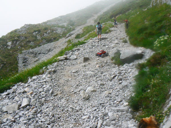 Venga, Coche a tope, 5 kilos largos de baterias a la espalda y tomamos el camino que primero sube hacia la pared del teleferico.