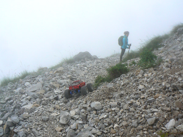 El emaxx aun con la pirmera bateria cuando superanos los 20 metros de desnivel.