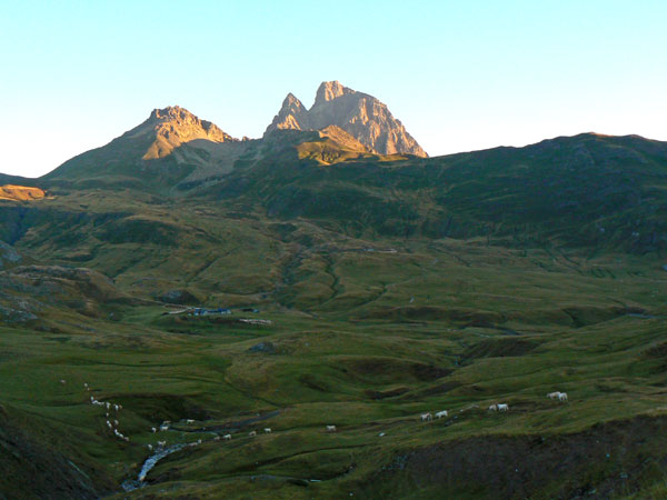 El sol ya ilumina la bestia del Midi D´Ossau , esa mole a la derecha