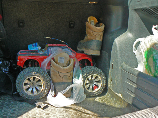 En esta corta ecxursion, el coche de radicontrol regreso al maletero en poc mas de hora y media, con el servo roto.