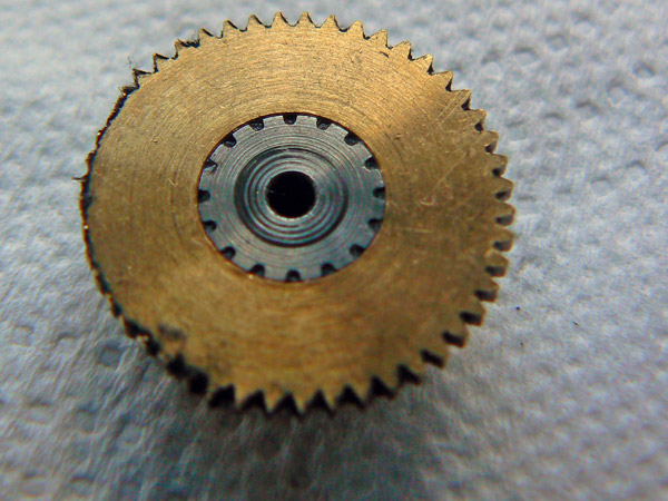 Asi queda un engranaje del servo Hitec 645MG que llevo eb la direcciion delantera, cuando se gasta o gripa otro de los que lo mueven.