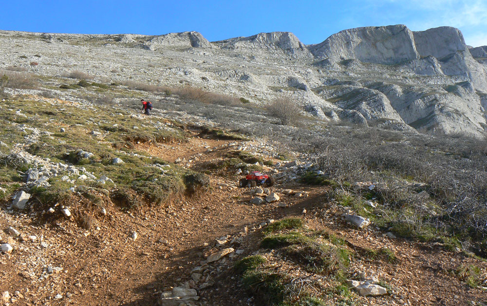 Bajada por la ladera del monte Beriain, con un coche 4x4 electrico de radio control.