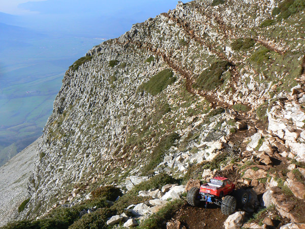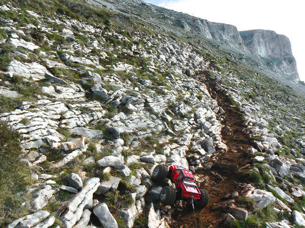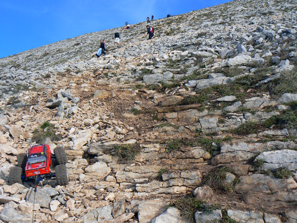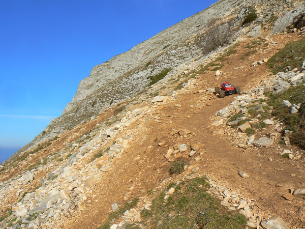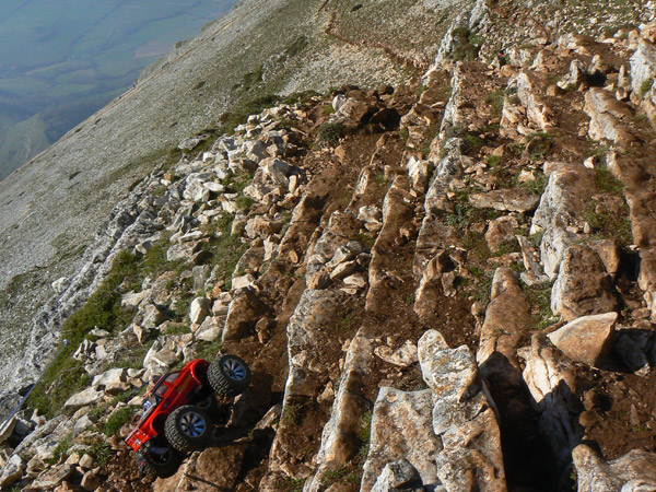 Subir esto con un coche de radio control ya se ha hecho otras veces, cuatro con seguridad de un total de seis intentos , ya que son las que yo he llegado con mi emaxx 3906 a la ermita refugio y vertice geodesico mas alto.