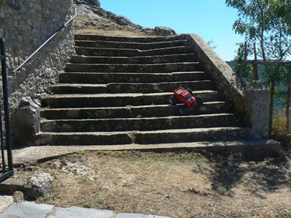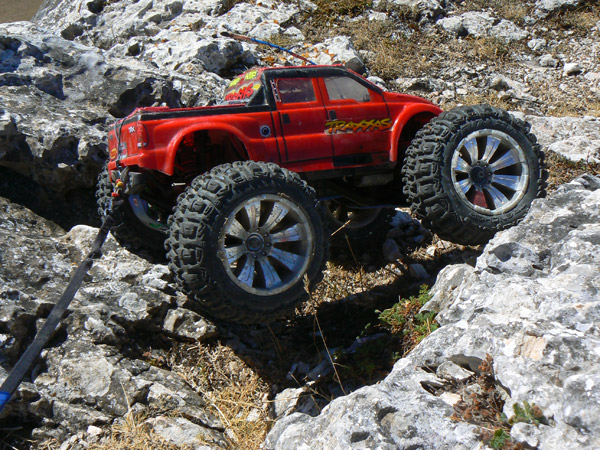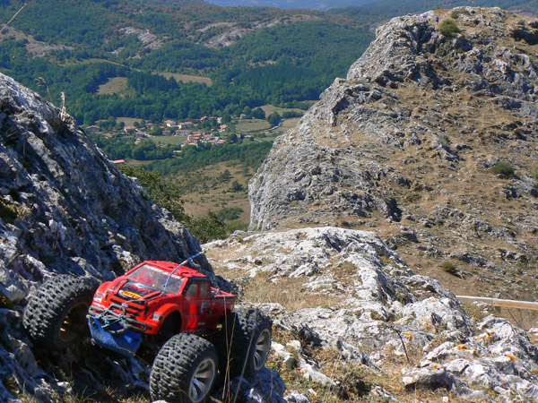 Ficha técnica. Emaxx Setup. Gasto de baterías: 4 Doble pack de duratrax 4200Mah / 4100 mas , 1 Lifepo 4500 mah Muelles de espiral roja Integy Tmaxx duros, dos anillos de precarga en los amortiguadores. Diferenciales bloqueados + 4 MIP Cvd en un lado - RPM brazos - Robinson Racing piñones. Neumáticos originales Traxxas preparados. Cajas diferencial aluminio Megatech. Aceite 30/40 en amortiguadores Bigbore con un agujero en pistón. Posición amortiguadores 1B. Servo Hitec 645MG. 2 Rx packs Nimh 6V * 1400 mah independientes para servo y ventilador. Tx pack 8 * 2500 Sanyo nuevas Nimh. Brazos de dirección RPM con rodamientos más grandes y sellados. Bieletas dirección aluminio. 2 MIP CVD delante. Robinson Racing diferencial... Bajos tapados con placa de Pvc 3 mm, incluidos brazos de suspensión y frontal mucho más ancho que el estándar. Disipadores de calor en aluminio para los dos motores Integy 45T en paralelo a maximo de 12V , ventilador adicional para aletas motor y variador electrónico. .