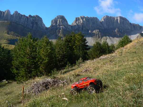 Ficha técnica. Emaxx Setup. Gasto de baterías: 4 Doble pack de duratrax 4200Mah / 4100 mas , 1 Lifepo 4500 mah Muelles de espiral roja Integy Tmaxx duros, dos anillos de precarga en los amortiguadores. Diferenciales bloqueados + 4 MIP Cvd en un lado - RPM brazos - Robinson Racing piñones. Neumáticos originales Traxxas preparados. Cajas diferencial aluminio Megatech. Aceite 30/40 en amortiguadores Bigbore con un agujero en pistón. Posición amortiguadores 1B. Servo Hitec 645MG. 2 Rx packs Nimh 6V * 1400 mah independientes para servo y ventilador. Tx pack 8 * 2500 Sanyo nuevas Nimh. Brazos de dirección RPM con rodamientos más grandes y sellados. Bieletas dirección aluminio. 2 MIP CVD delante. Robinson Racing diferencial... Bajos tapados con placa de Pvc 3 mm, incluidos brazos de suspensión y frontal mucho más ancho que el estándar. Disipadores de calor en aluminio para los dos motores Integy 45T en paralelo a maximo de 12V , ventilador adicional para aletas motor y variador electrónico. .