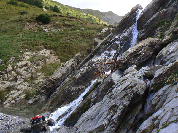 Esta subida del coche electrico de radio control por estos bajantes de caliza y agua la he disfrutado en muy pocas ocasiones, y esta , sin duda la mejor.