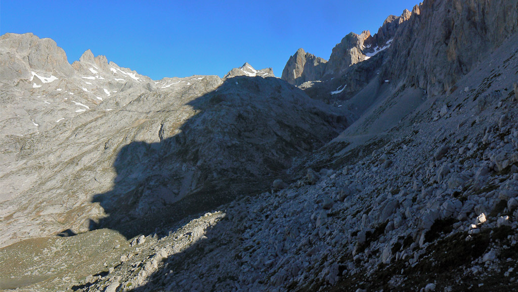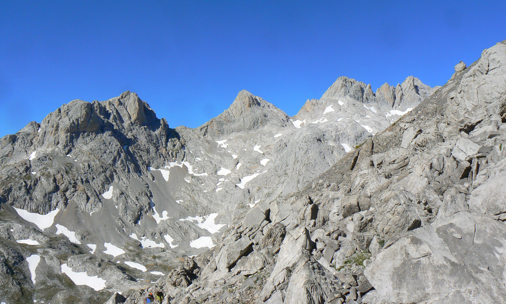 ABAJO, PANORAMICA HACIA PICO DE SANTA ANA, TORRE DE HORCADOR ROJOS Y TESORERO.