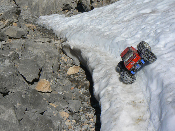 Ficha técnica. Emaxx Setup. Gasto de baterías: 4 Doble pack de duratrax 4200Mah / 4100 mas , 1 Lifepo 4500 mah Muelles de espiral roja Integy Tmaxx duros, dos anillos de precarga en los amortiguadores. Diferenciales bloqueados + 4 MIP Cvd en un lado - RPM brazos - Robinson Racing piñones. Neumáticos originales Traxxas preparados. Cajas diferencial aluminio Megatech. Aceite 30/40 en amortiguadores Bigbore con un agujero en pistón. Posición amortiguadores 1B. Servo Hitec 645MG. 2 Rx packs Nimh 6V * 1400 mah independientes para servo y ventilador. Tx pack 8 * 2500 Sanyo nuevas Nimh. Brazos de dirección RPM con rodamientos más grandes y sellados. Bieletas dirección aluminio. 2 MIP CVD delante. Robinson Racing diferencial... Bajos tapados con placa de Pvc 3 mm, incluidos brazos de suspensión y frontal mucho más ancho que el estándar. Disipadores de calor en aluminio para los dos motores Integy 45T en paralelo a maximo de 12V , ventilador adicional para aletas motor y variador electrónico. .