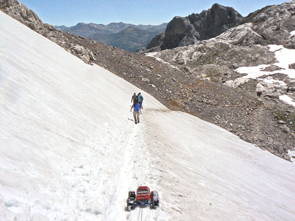 Subimos en el primer teleferico y tras revisar la emisora, direccion y neumaticos nos ponemos en marcha .