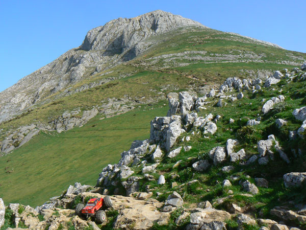 Sexta subida al Txindoki con el coche de radiocontrol electrico si no llevo mal la cuenta. No recuerdo si en todas he conseguido llevarlo hasta la cima , quizas algun dia la lluvia o la niebla me consejaron dar la vuelta en el l collado de Egurral , pero no importa, el camino es agradecido y te recompensa llevandote por unos parajes que merecen cualquiuer esfuerzo.