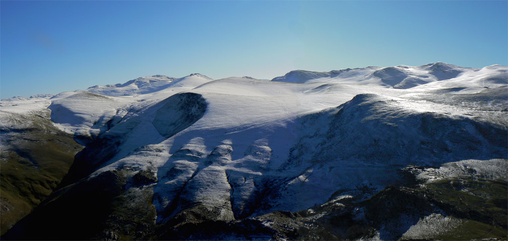 por pendiente directa de hierba larga y más arriba por la helada.