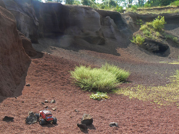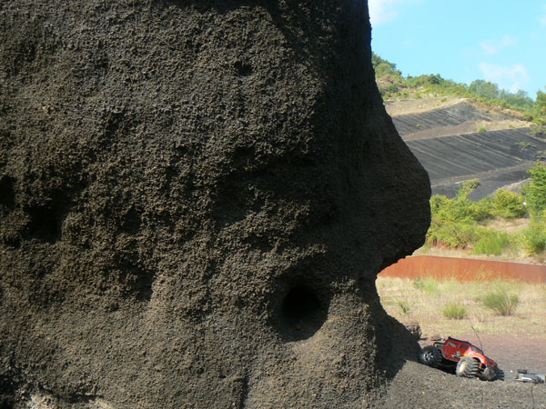 en busca de grava volcánica, y presenta una imagen un tanto peculiar.