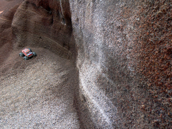 Increibles capas de grava volcanica y cenizas.